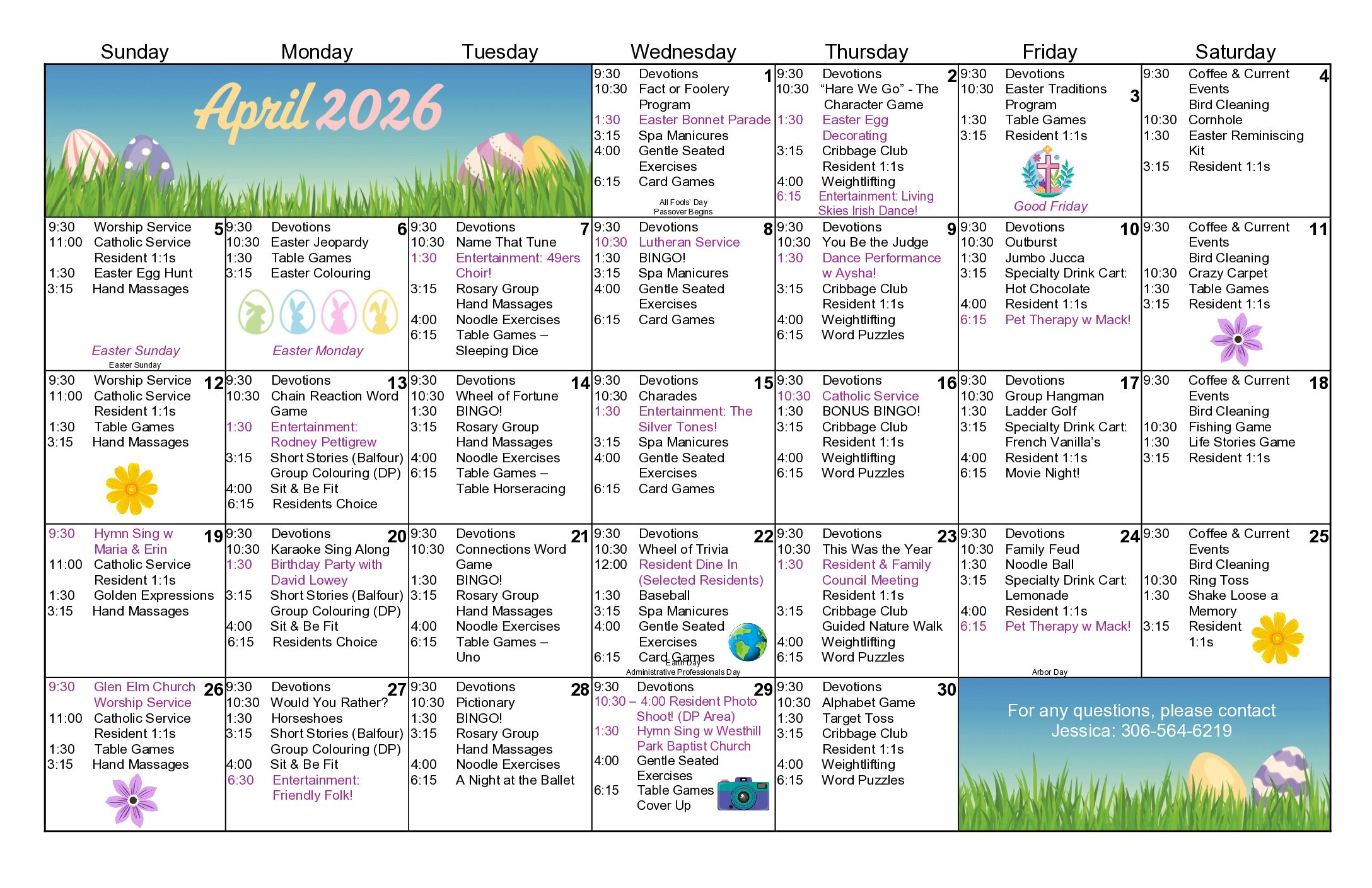 Please checkout our FaceBook for Resident Activities: